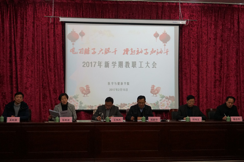 2月15日,我院在学生事务中心报告厅召开新学期教职工大会,会议由党委副书记张凯波主持,党委书记王伟杰,院长顾新华,副院长邱伟文、郭志平、吴松泉,全体教职工参加了会议。