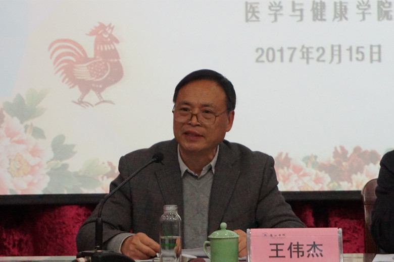 王伟杰认为,2017年是不平凡和值得期待的一年。招生制度改革,新一轮硕士点申报和留学生教育项目的启动,为我院发展提供了广阔的空间。同时他从客观、主观和外部现实等三个方面分析了学院发展存在的问题。他指出,学校在新年祝贺短信中提出了“甩开膀子大胆干,撸起袖子加油干”,这体现了一往无前的状态和气势。王伟杰希望广大教职员工在此基础上,“开动脑筋灵活干、迈开步子加快干、勇于担当认真干、不屈不挠持久干、干部党员带头干、同心同德一起干、劳逸结合健康干”。