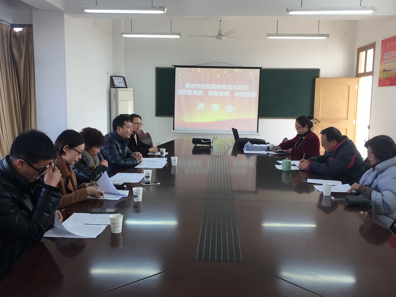 近日,由丽水市卫计委发文、丽水学院医学与健康学院负责具体工作的丽水市2016年住院医师规范化培训优秀管理者、优秀带教老师、优秀住院医师评审会在我院进行。丽水市卫计委副主任梁军,丽水市卫计委人事科教处处长何丽俊,丽水市毕业后医学教育委员会办公室副主任黄莺,医学与健康学院党委书记王伟杰,丽水市护士学校校长朱菊云,丽水市中心医院、人民医院、中医院临床技能中心负责人,医学与健康学院科研与地方合作科相关人员参加了评审工作,本次评优工作共设立优秀管理者、优秀带教老师、优秀住院医师三个奖项。