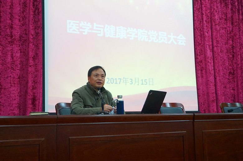 王伟杰指出,2017年是基层党建落实年,2017年党委工作就是一个中心、二个全面贯彻、三个结合,即以推进“全面从严治党”为中心,全面贯彻全国全省思政工作会议精神、全面贯彻新形势下加强与改进高校基层党组织建设实施意见,与学院的十大工作相结合、与健康中国行动相结合、与学院文化建设相结合。党员志愿服务的主题是关注自己,搭建党员健康互助平台,把危害健康的因素降到最低。从关注自己做起,关注丽水学院,然后走出学院,关注健康丽水,学校对我院很期待。2017年是党建工作积极有为的一年,希望通过大家的努力,把我院党建工作提到一个新的水平。