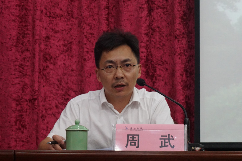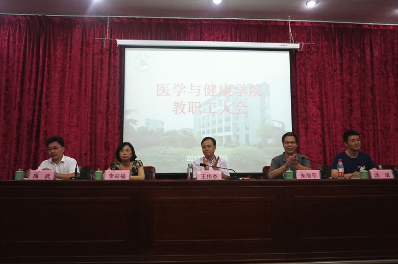 7月2日,我院在学生事务中心报告厅召开教职工大会,执行院长王伟杰、党委书记朱海平、副书记汤斌、副院长李彩福、周武在主席台就座,朱海平主持会议。