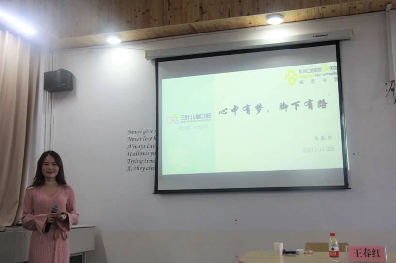 我院十周年院庆系列讲座活动于近期逐步开展,11月28日下午在12E教学楼206教室,我院邀请了优秀校友三叶儿童口腔杭州城西诊所的经理兼创始人王春红女士为同学和老师们进行演讲“心中有梦,脚下有路”。