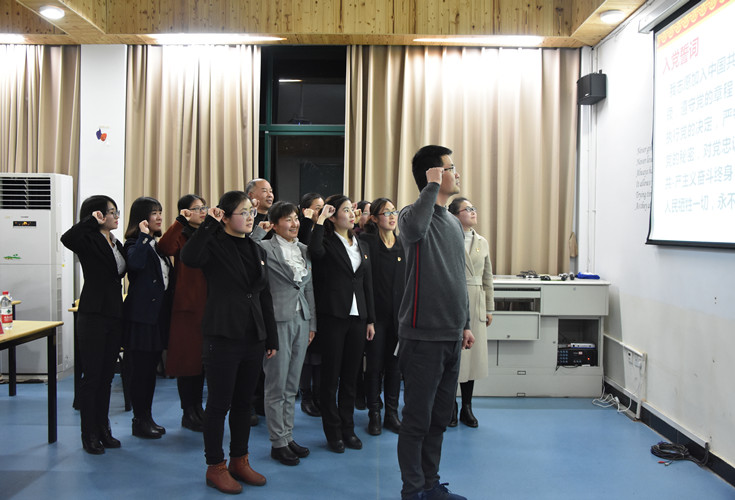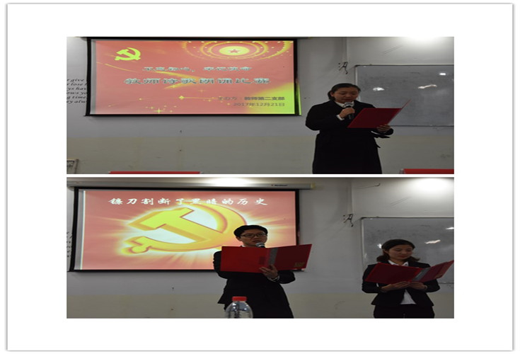 朗诵比赛结束,在雄壮的国歌之后,教师第二支部全体党员重温了入党誓词。