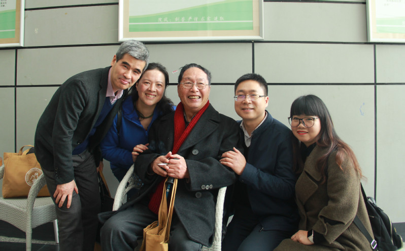 2017年12月3日,医学院成立十周年之际,张辉虎(右2)等校友与原卫校老校长