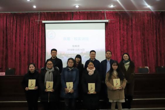 2018年12月14日晚上,张辉虎专程回母校,在“浪潮·校友讲坛”为学弟学妹们作讲座,