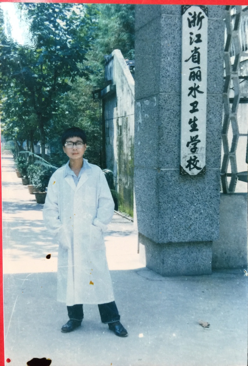 1989年秋天,入读卫校之初的张辉虎于学校大门口留影。
