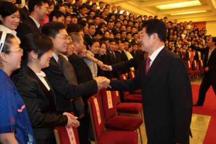 栉风沐雨,实至名归。2011年5月4日,纪念五四运动92周年暨中国青年五四奖章和全国优秀团员、团干部、团组织表彰座谈会在北京人民大会堂举行,张辉虎作为2010年度“全国优秀共青团干部”赴京参会,受到时任中共中央政治局委员、全国人大常委会副委员长王兆国和共青团中央书记处第一书记陆昊等领导同志的亲切接见。他也是全省青工线年度该奖项的惟一获奖者。当天的中国青年报刊登了先进名单,人民日报、人民网、浙江日报等随后作了报道。时至今日,从事团工作的那段激情燃烧的岁月,依然是他内心一团永不熄灭的火,每每和团干条线的青年们、朋友们见面,他总是难掩那份别样的亲切。他在一篇文章中曾这样写道:“多少年后,在蓦然回首的刹那,你会发现,你无怨的青春没有遗憾,就像你我胸前那枚依然闪耀的团徽。”这段话,也正是他走过的这段赤诚无悔岁月的真实写照。