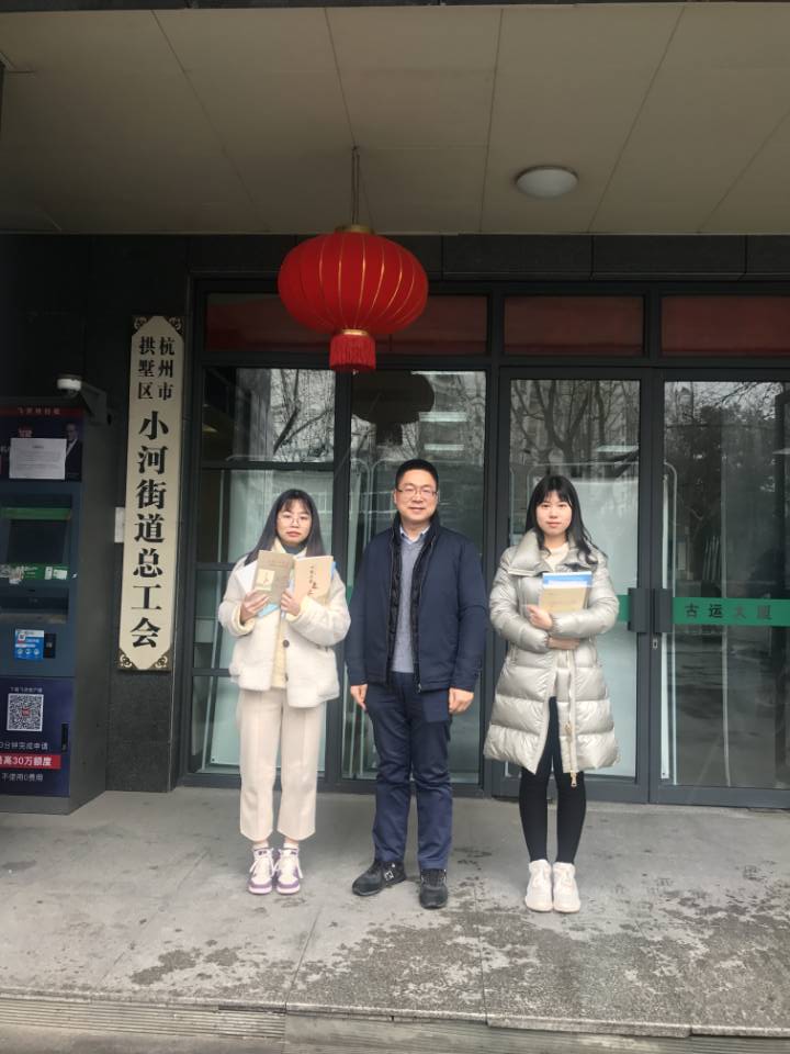 2019年3月,张辉虎在杭州接受学生记者采访并合影。