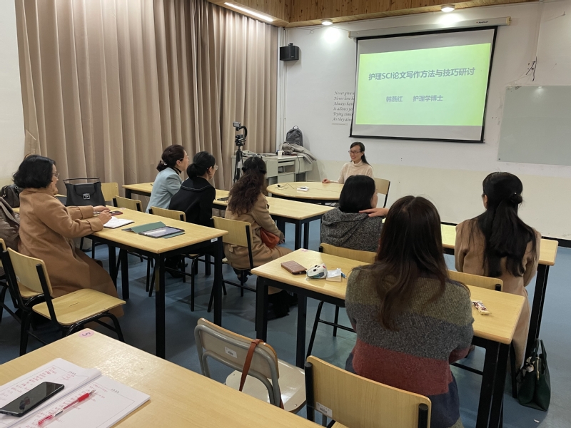 韩博士详细介绍了护理SCI收录杂志的种类、名称,并结合高质量的论文实例对SCI论文的写作格式、规范性、语句及写作方法和技巧进行详细介绍,之后与护理学系教师进行研讨,并对教师提出的问题进行了详细的解答,并鼓励教师积极撰写文章和投稿,教师们一致认为此次讲座与研讨收获非常大,今后会积极开展护理教育与临床护理相关研究,提高论文撰写能力与水平,促进我校护理学科和专业的快速发展。