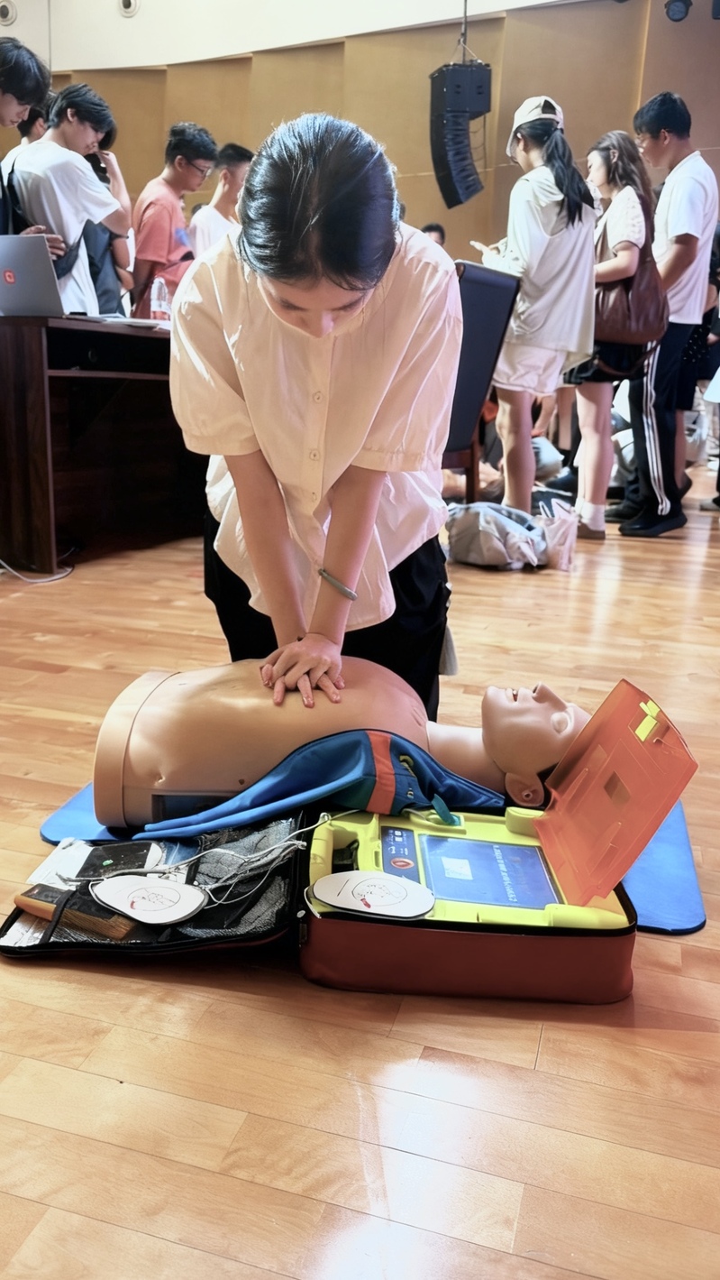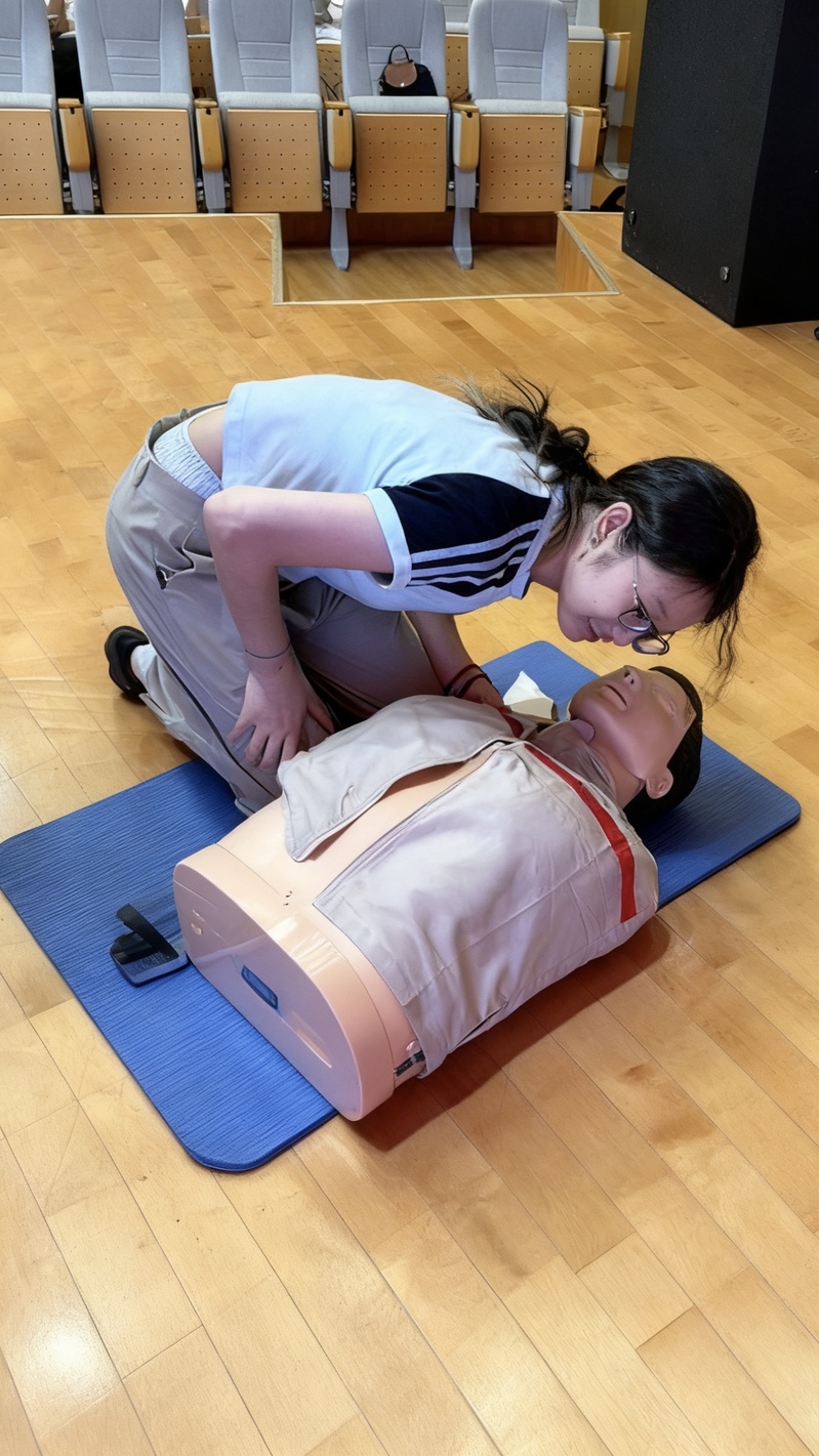 培训现场,学员们认真学习了心肺复苏(CPR)、自动体外除颤器(AED)使用、创伤包扎、常见急症现场处理等核心急救内容。在专业老师的指导下,大家积极进行实操演练,相互配合,现场学习氛围浓厚而热烈。许多新生表示,这堂“入学第一课”别开生面且意义深远,不仅学到了能救命的实用技能,更深刻体会到了医者仁心的初含义。