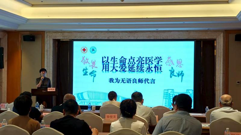 交流会上,医学院相关负责人作为此次会议发言代表之一作了题为《以生命点亮医学,用大爱延续永恒—我为无语良师代言》交流汇报,从医学教育者的视角,深刻阐述了遗体捐献者作为“无语良师”对医学事业发展的非凡意义。