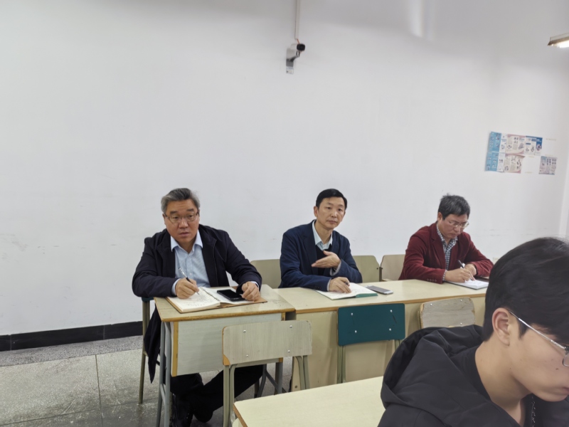 课堂上,陈建玲老师讲课清晰易懂,同学们上课很投入,积极回答问题。课后,胡锋吉与陈建玲老师进行了交流,他特别表扬了陈老师专业知识很扎实,上课很有吸引力,能让学生们真正喜欢上这门重要的基础课。