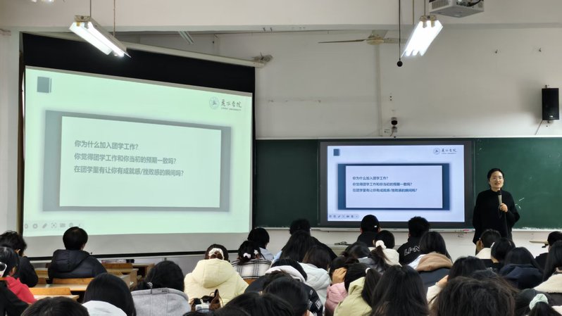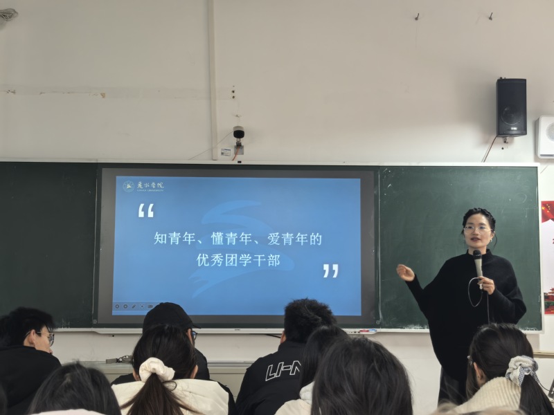 团课围绕认识、思想、技能、实践四大篇章展开。封红艳先从团学组织架构与职能入手,用生动的表情包案例展现团学工作日常,让同学们直观认识团学工作的内涵;随后通过初心探讨、案例分析,引导团学干部反思工作初衷,树立“做青年友不做青年官”的服务理念;在技能篇中,分享活动策划的破冰技巧与工作方法,鼓励大家突破自我;实践篇则结合团学活动实例,阐述其在思想、学风、情感、实践建设中的作用,明确团学干部的成长路径。