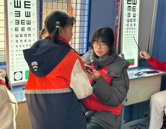 为积极响应国家关于加强青少年近视防控的号召,切实关注青少年视力健康状况,普及科学用眼知识,2025年12月4日至26日期间,我院青年志愿者协会联合丽水爱尔眼科医院,走进丽水市莲都区十余所中小学,共同开展“守护‘睛’彩视界”视力普查公益活动,为近千名中小学生提供了专业的视力筛查与健康指导。