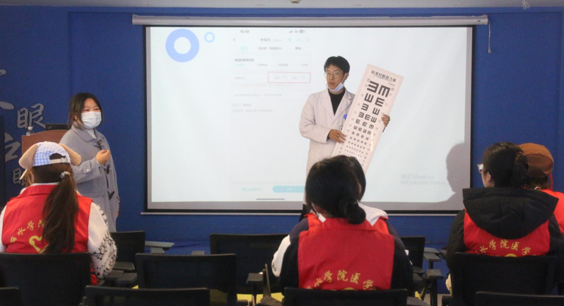活动前期,爱尔眼科医院为我院志愿者组织了专业培训。志愿者们系统学习了视力检测流程、设备操作规范及基础眼健康知识,为校园服务做好充分准备。