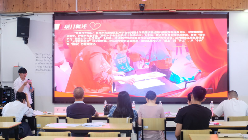 活动现场气氛热烈,各团队代表依次上台分享实践经历。聚焦社会特殊群体需求,“认知障碍家庭抗逆力调查研究” 团队深入社区与康复机构,通过问卷调研、深度访谈等方式,系统分析认知障碍家庭面临的困境与应对能力;关注基层医疗发展,“浙西南乡村医生职业认同调查” 团队奔赴偏远乡村,与乡村医生面对面交流,梳理出职业认同现状及影响因素,为提升基层医疗人才稳定性建言献策;守护生命安全,急救实践团队则以理论讲解结合现场演示的形式,生动呈现了暑期在社区、学校开展急救培训的成果,展现了青年学子守护公众健康的责任担当。各团队的分享内容扎实、情感真挚,赢得了现场评委与观众的阵阵掌声。