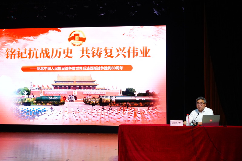 10月9日中午,党委委员、副校长胡锋吉在学术报告厅,以“铭记抗战历史 共铸复兴伟业——纪念中国人民抗日战争暨世界反法西斯战争胜利80周年”为主题,为我院学子讲授形势与政策课。课程围绕“长风浩荡、中流砥柱、盛世盛典、强军伟业、昭示未来”五个维度展开,将抗战历史与医学使命深度融合,为青年学子上了一堂生动的爱国主义教育课。