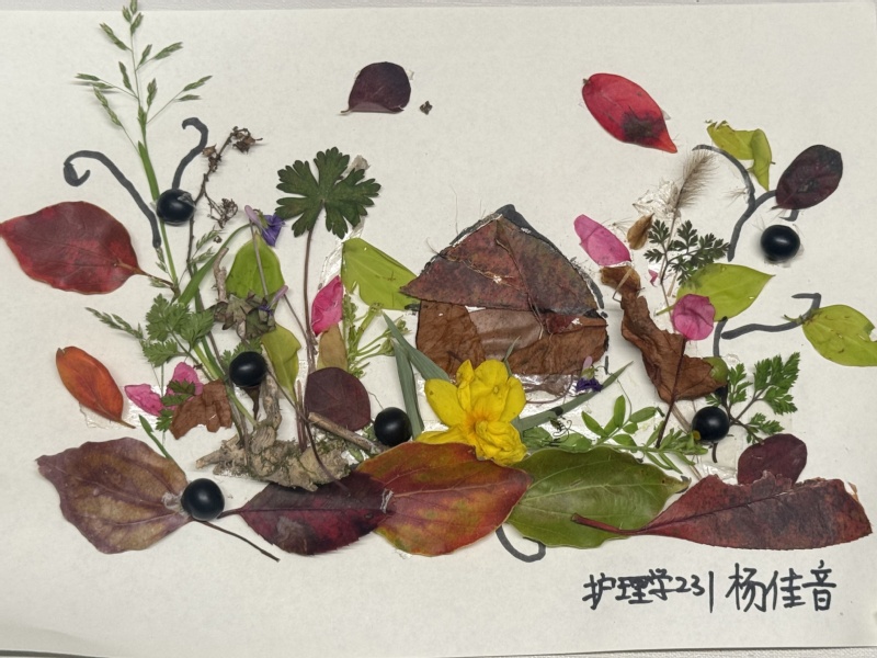 活动伊始,工作人员提前到场完成场地布置与物料摆放,营造出充满自然气息的创作空间。随着同学们陆续到场,落叶创意DIY创作正式开启——大家以校园落叶为核心素材,发挥奇思妙想,制作落叶拼贴画、落叶书签、创意手作等作品,将秋日的落叶转化为独一无二的艺术创作。