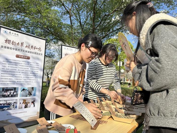 为传承中华医药传统文化,喜迎樱花节到来,2026 年 3 月 25 日下午,丽水学院 “樱韵草本,岐黄和鸣” 浪漫樱花节中医文化展演暨社团文化节在樱花园顺利举办。我院中医康复学专业学生代表,携中药香囊制作、药珠手串制作两项特色体验活动参展亮相。