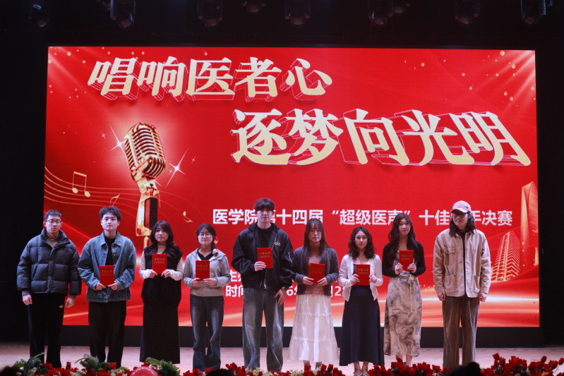 赛事最后,评委团根据选手的演唱技巧、情感表达、舞台表现力等维度进行综合打分,最终评选出本次大赛获奖名单:徐浩阳荣获冠军,赵婕斩获亚军,贾戴维夺得季军,十位优秀选手正式荣膺医学院校园十佳歌手称号。评委老师依次为获奖选手颁发荣誉证书与奖杯,向他们表示热烈祝贺,并鼓励学子们坚守热爱、逐梦前行。